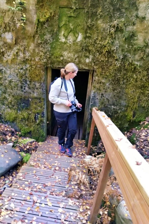 Olin kyllä varautunut taskulampun kanssa, mutta ihan rehellisyyden nimissä sisään kurkistaessani, ei mieli tehnytkään mennä sen pidemmälle. Kurkimme siis vain ovelta tätä yhtä Salpalinjan monista bunkkereista.