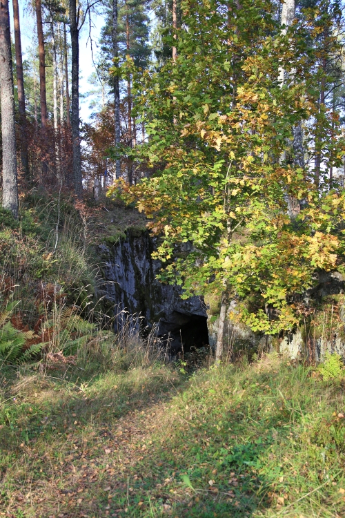 Korsujen jälkeen palataan taas takaisin samaa reittiä Vanhalle Mikkelintielle ja hetken päästä käännytään takaisin Munterontielle, jonne tullessa käännyttiin autolla. Hiekkatiellä vastaan tulee vielä miehistöluola, jota kurkistelimme ulkopuolelta.